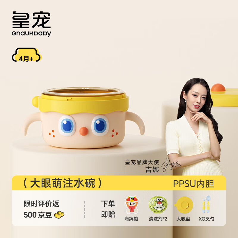皇宠大眼萌宝宝辅食碗婴儿专用米粉注水保温碗不锈钢儿童餐具5 克洛黄【PPSU内胆】