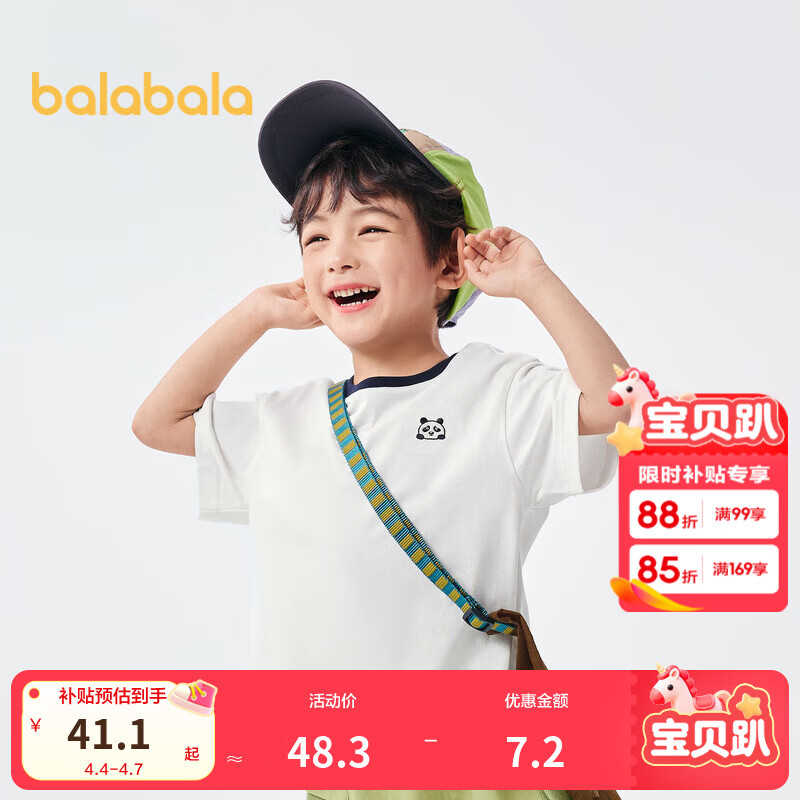 巴拉巴拉童装T恤儿童短袖男童纯棉夏装女童上衣简约百搭 本白10101 110cm