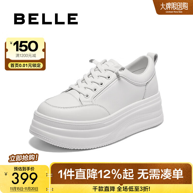 百丽(Belle)厚底增高小白鞋女商场同款简约百搭休闲鞋E3P1DCM5 白色 36