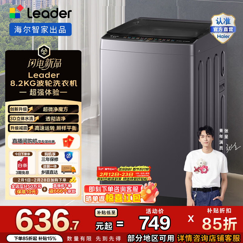 Leader家用8.2kg 全自动波轮洗衣机 除螨 桶自洁 XQBL82-M20D1 星蕴银 一级能效 六维减震