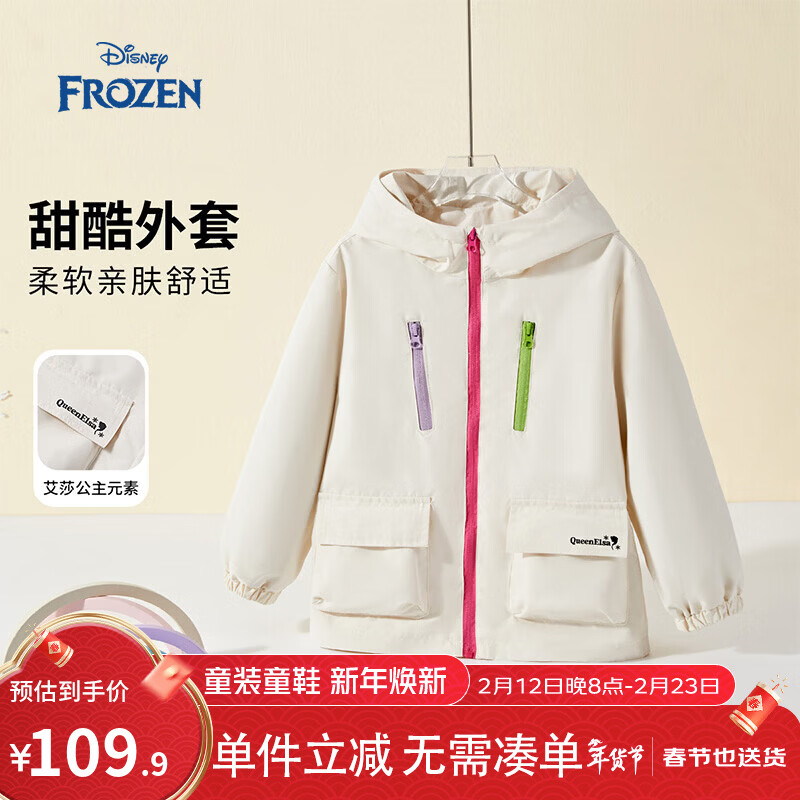 迪士尼(Disney)儿童软壳衣2026春季新款男女童风衣防水连帽外套户外休闲上衣童装 粉色 160