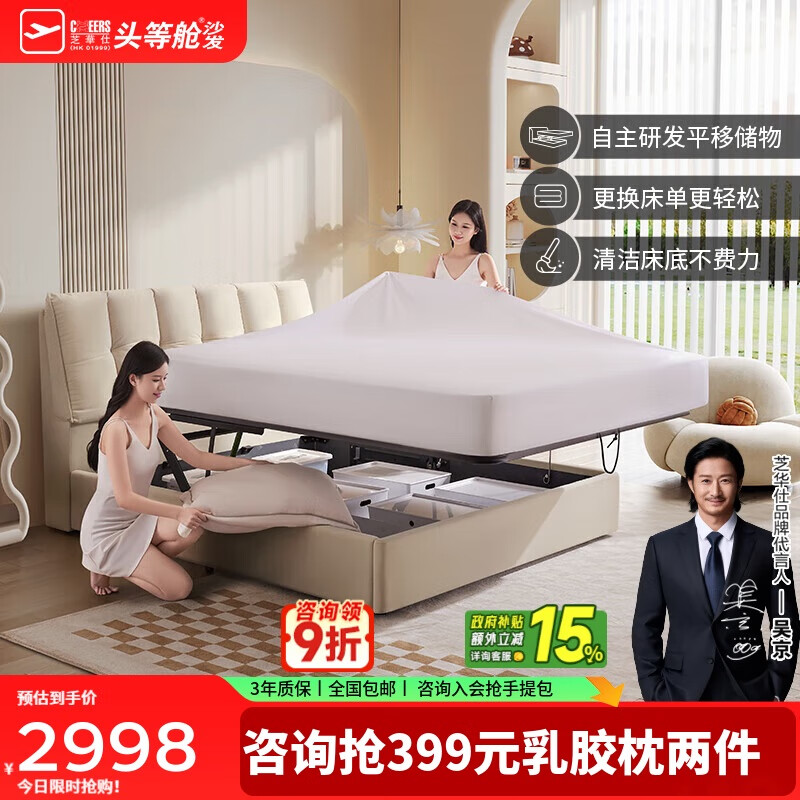 芝华仕(CHEERS)五星布床科技布现代简约软包婚床芝华士C377储物奶绒白1.8米