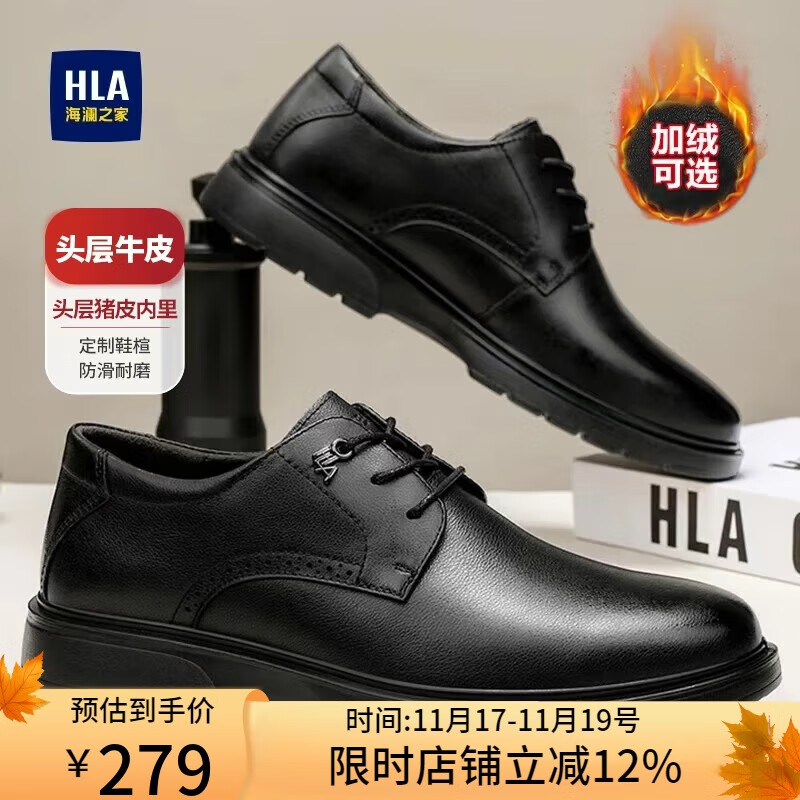 海澜之家HLA皮鞋男秋冬英伦头层牛皮鞋子男士正装商务休闲鞋男 T342黑色42