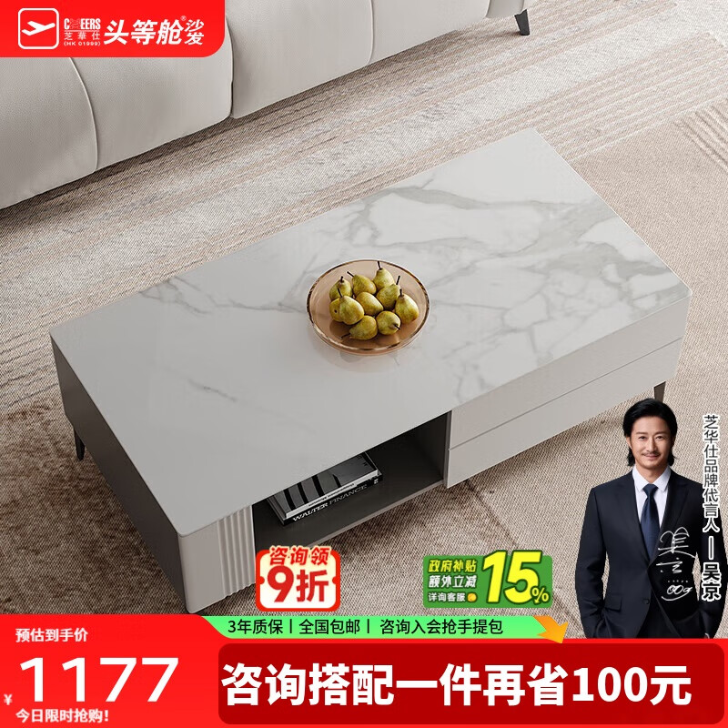 芝华仕(CHEERS)岩板茶几现代简约客厅家具家用茶桌芝华士CJ101蟹青色