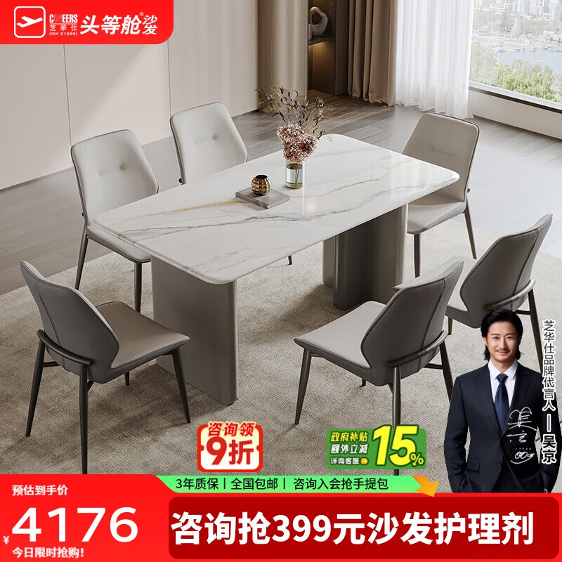 芝华仕(CHEERS)微晶石餐桌意式极简轻奢家用方形饭桌子芝华士CT120带六椅