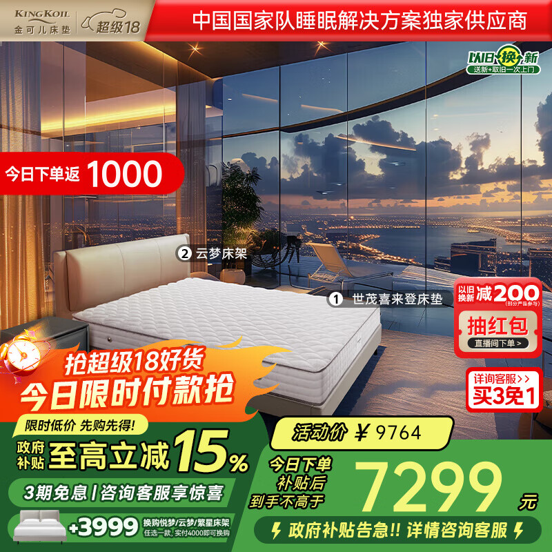 金可儿(Kingkoil)皮床双人床弹簧乳胶床垫云梦之床+世茂喜来登套床1.8*2米