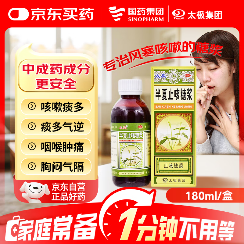 太极【官方正品】太极 半夏止咳糖浆 180ml/瓶止咳化痰祛痰止咳药嗓子干痒咳嗽强力止咳咳嗽痰多风寒感冒儿童