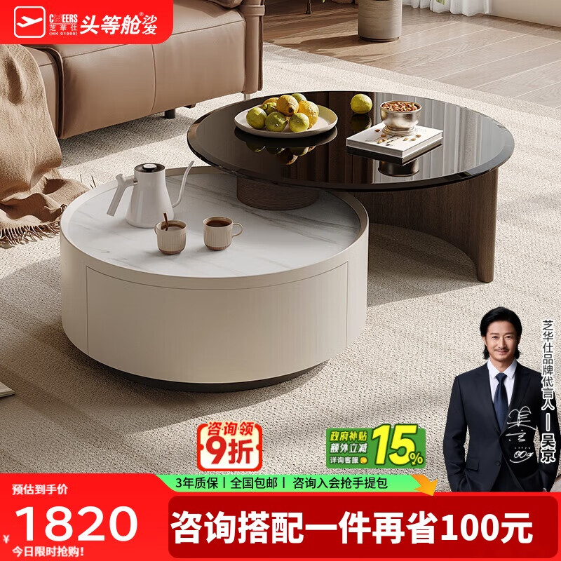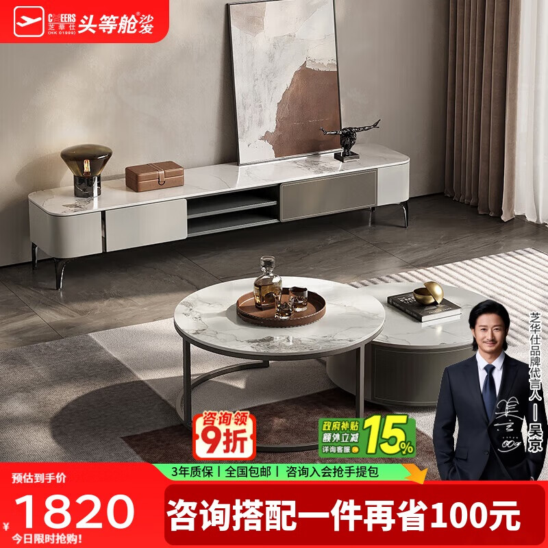 芝华仕(CHEERS)现代简约组合岩板茶几客厅家用储物CJ144