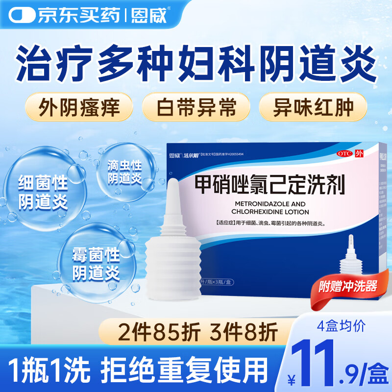 恩威洁尔阴 甲硝唑氯己定洗剂液3瓶*50ml妇科洗液私处止痒杀菌杀虫霉菌性阴道炎专用药私处私护洗液