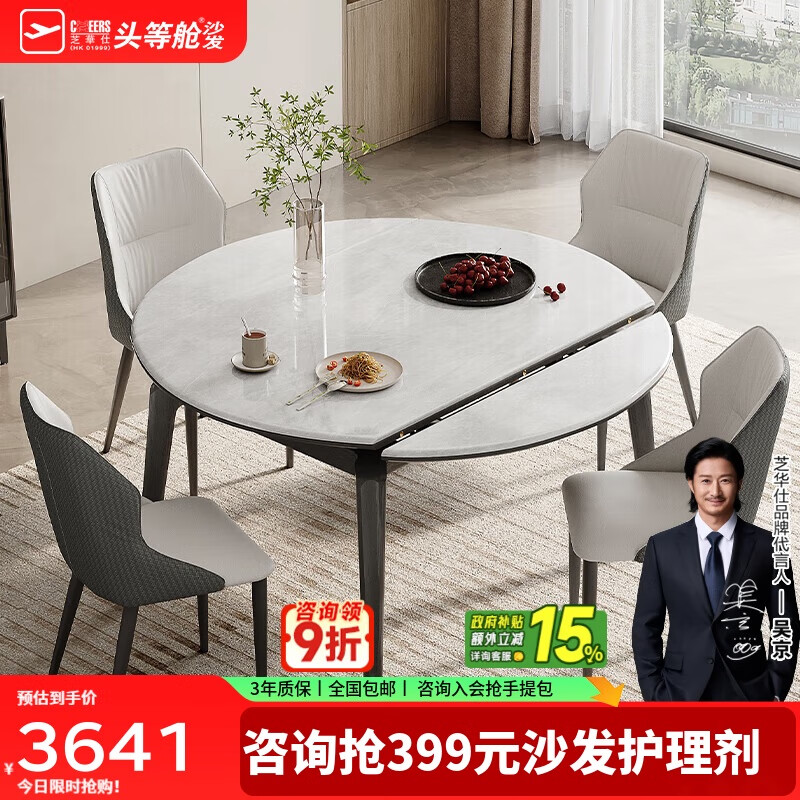 芝华仕(CHEERS)微晶石餐桌现代简约可伸缩家用圆形饭桌芝华士CT135带四椅