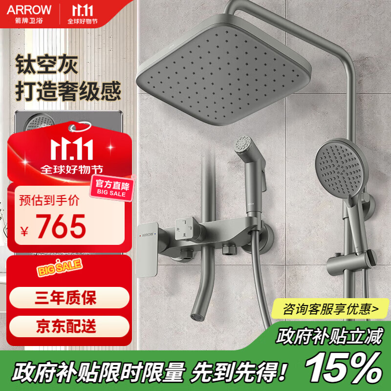 箭牌(ARROW)太空灰淋浴花洒套装冷热龙头增压喷枪花洒全套AE3405MGGSP-P1