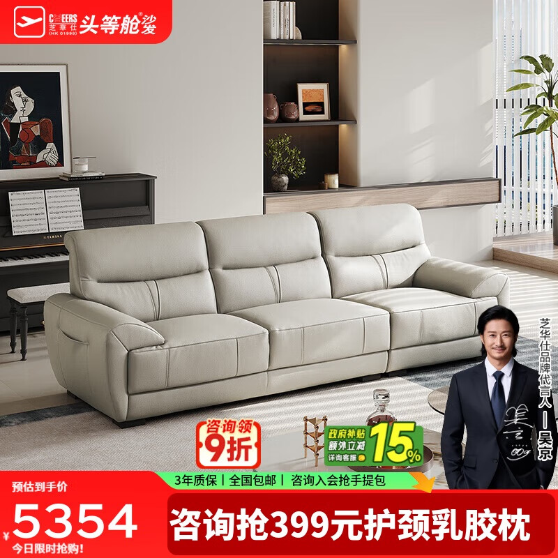 芝华仕(CHEERS)都市皮沙发现代简约真皮沙发大户型芝华士直排家用家具3120白三