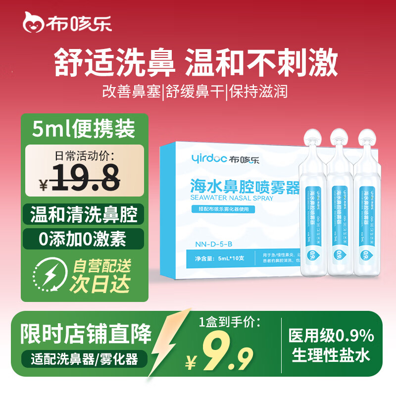 布咳乐生理性海水鼻腔清洗液儿童老人生理盐水洗鼻器专用盐水5ml*10支