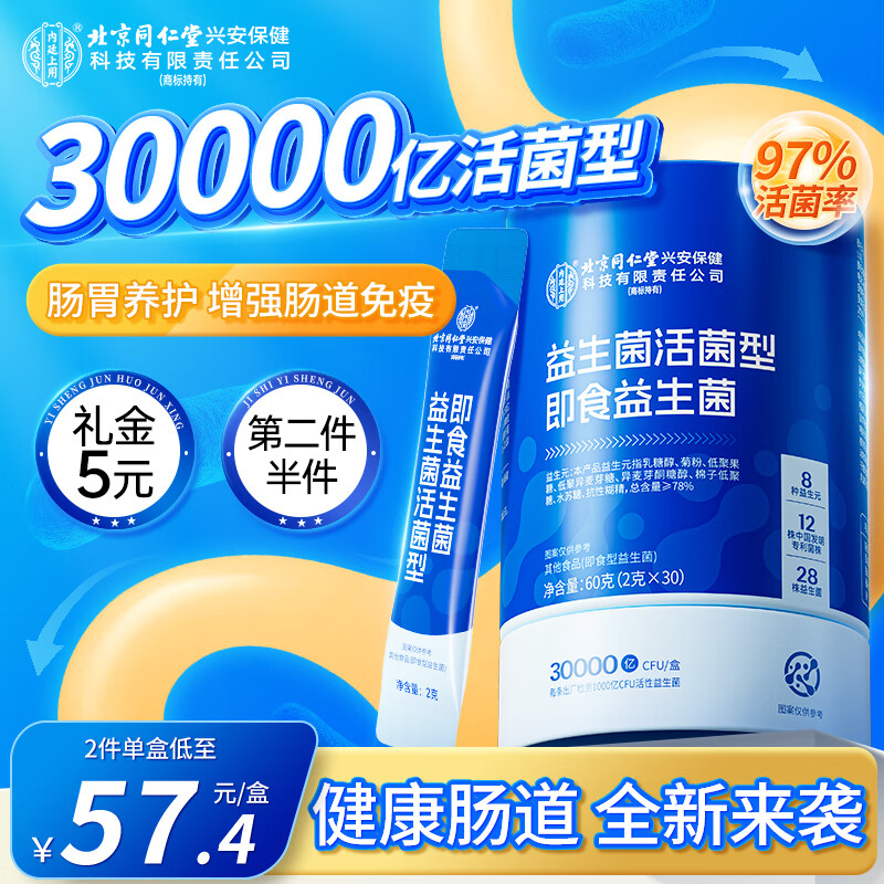 内廷上用同仁堂活性益生菌3万亿调理肠胃脾胃成人老年虚弱冻干粉消化
