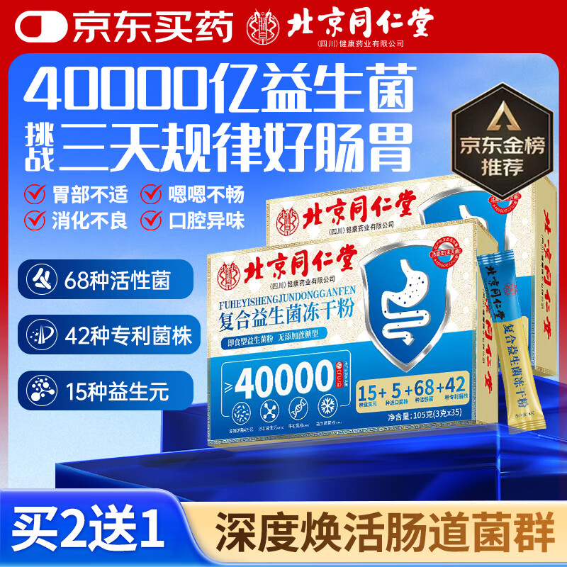 同仁堂(TRT)40000亿益生菌成人调理肠胃肠道脾胃虚弱高活性益生菌冻干粉105g