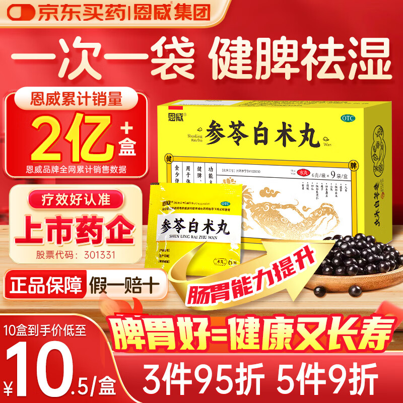 恩威 参苓白术丸6g*9袋 参苓白术散参苓健脾胃颗粒脾胃虚弱补脾健胃祛湿健脾养胃调理去体内湿气重脾虚肠胃散