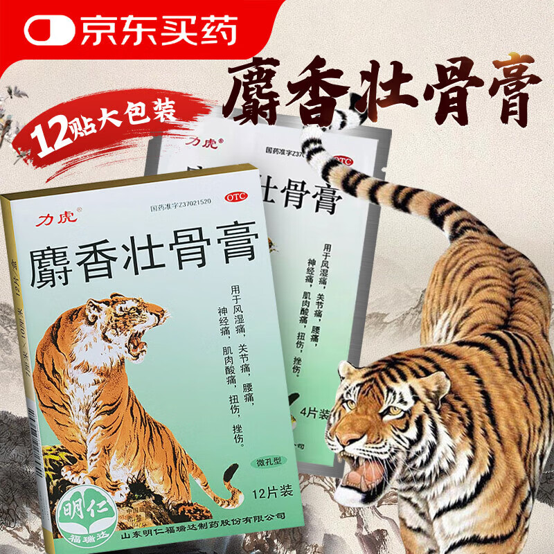 [力虎] 麝香壮骨膏 7cm*10cm*12片/盒 镇痛消炎 用于风湿痛、关节痛、腰痛、神经痛、肌肉酸痛 扭伤挫伤