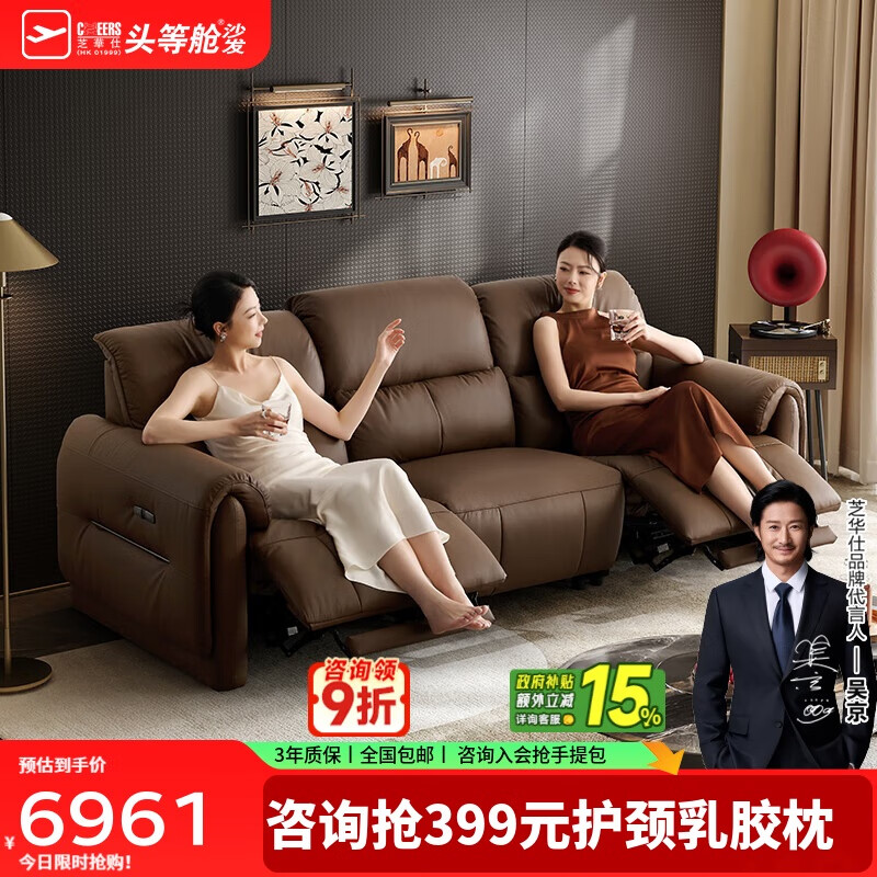 芝华仕(CHEERS)头等舱贵族真皮沙发客厅电动功能零靠墙家具芝华士30735 2.15M