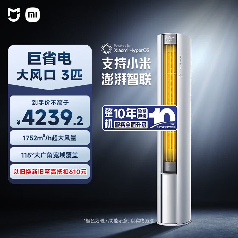 小米(MI)米家 3匹 大风口 巨省电 立式空调柜机 72LW-NA10/N1A1(W) 整机十年质保