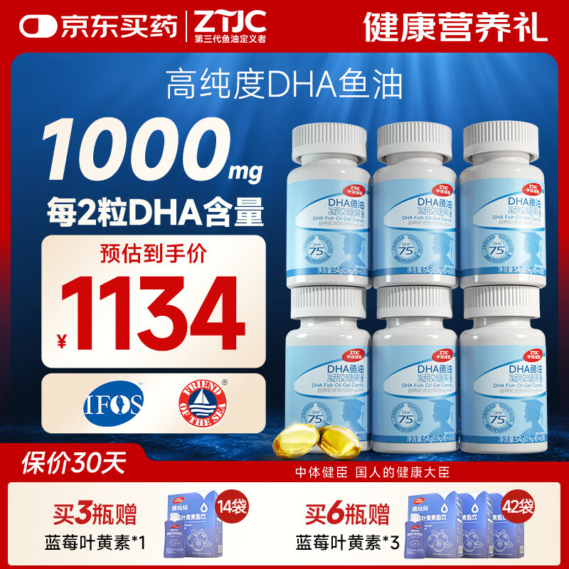 中体健臣深海鱼油软胶囊高纯dha含量500mg儿童少年初高中omega3考研360粒