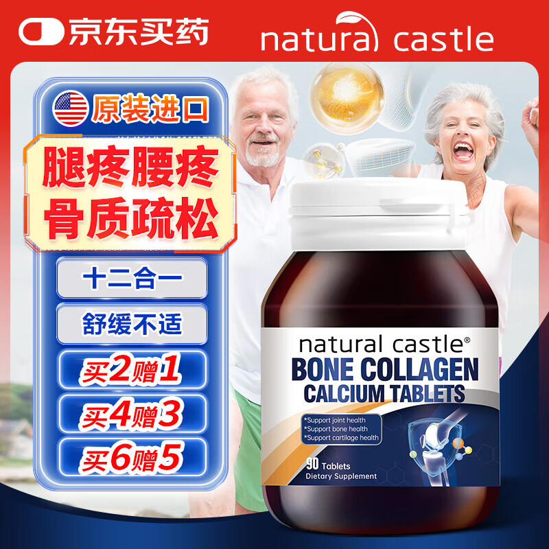 Natural Castle进口骨胶原钙片中老年 腿疼腰疼骨质疏松腿抽筋