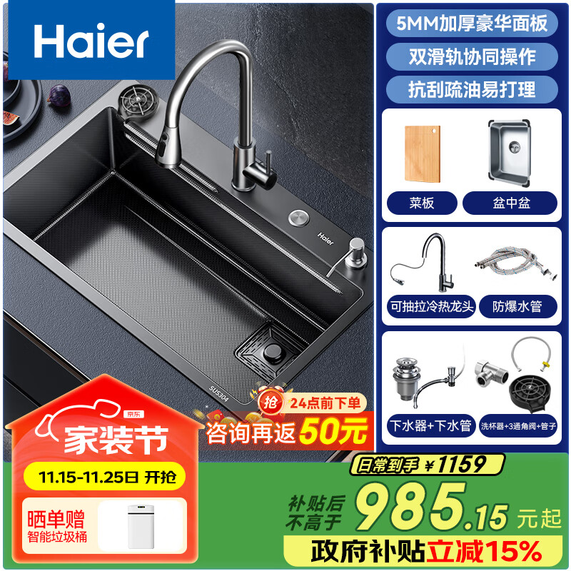 海尔(Haier)厨房水槽大单槽洗菜盆一体盆304不锈钢多功能洗碗洗菜池F05B6845B
