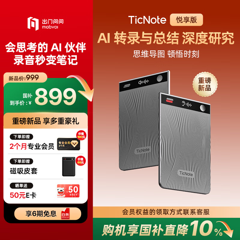 出门问问TicNote AI 录音笔悦享版经典灰 录音转文字 录音卡智能降噪 随身便携专业录音设备录音机纪要总结