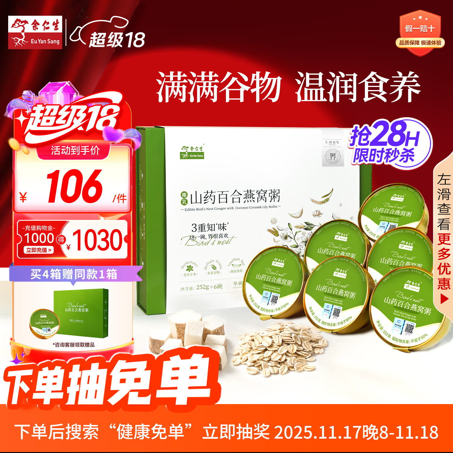 余仁生燕窝粥礼盒 252g*6碗节日礼物 椰乳山药百合味 早餐代餐 送礼长辈