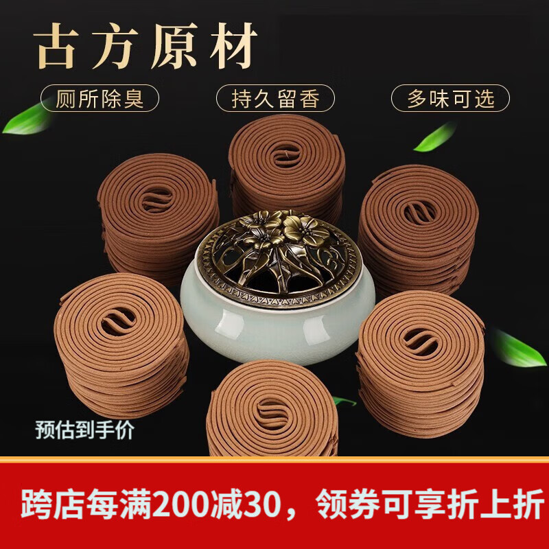 普云檀香沉香睡眠盘香艾草香藏香佛香熏香蚊香薰除臭净味4小时120片 沉檀艾三香120片4时-居家办公