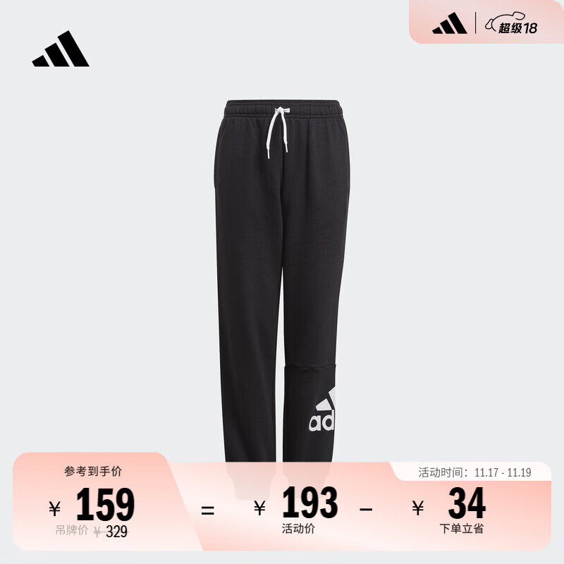 adidas男大童舒适毛圈布束脚运动裤儿童秋冬阿迪达斯官方轻运动 黑色/白 176