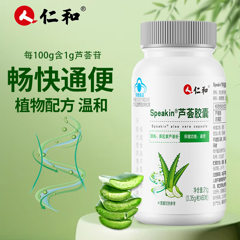 仁和库拉索芦荟胶囊60粒便秘通便成人男女中老年搭润肠清肠排宿便丸