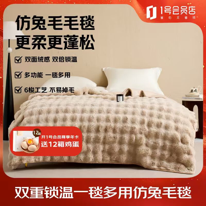 1号会员店One's Member 仿兔毛毛毯 盖毯 绒毯 米色100*150cm
