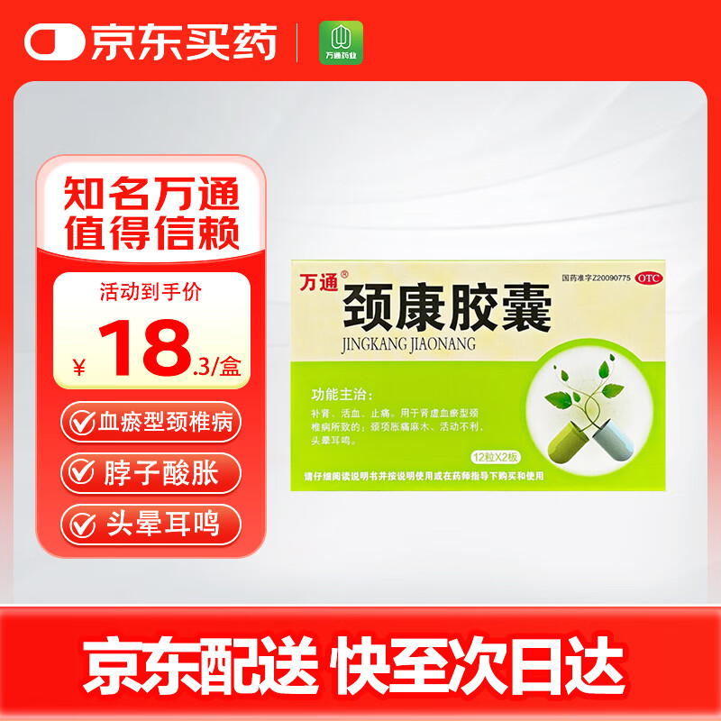 万通 颈康胶囊 0.23g*12粒/板*2板 补肾活血止痛 肾虚血瘀型颈椎病 头晕耳鸣