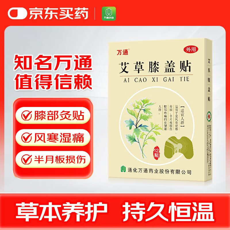 万通艾草膝盖贴12贴/盒 保健贴艾灸贴 半月板损伤风寒疼痛膝关节疼痛膝盖热敷贴