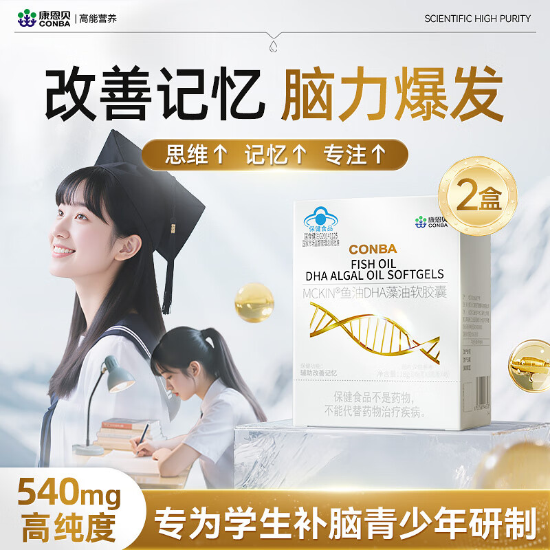 康恩贝鱼油dha学生青少年6-18岁补脑增强记忆力高中生dha儿童3-12岁*2盒