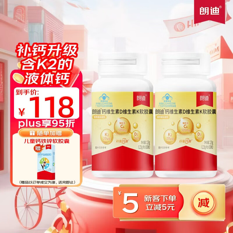 朗迪液体钙100粒*2 VK2 高钙维生素D3 青少年成人中老年钙片