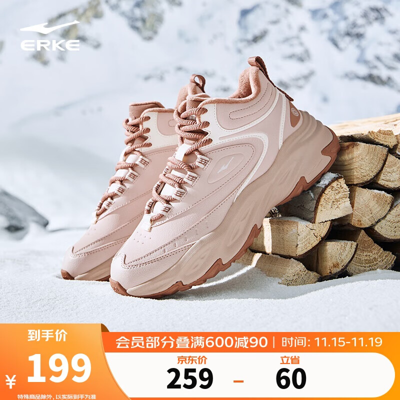 鸿星尔克加绒棉鞋女休闲防滑女鞋防滑保暖加厚运动板鞋子女暖途