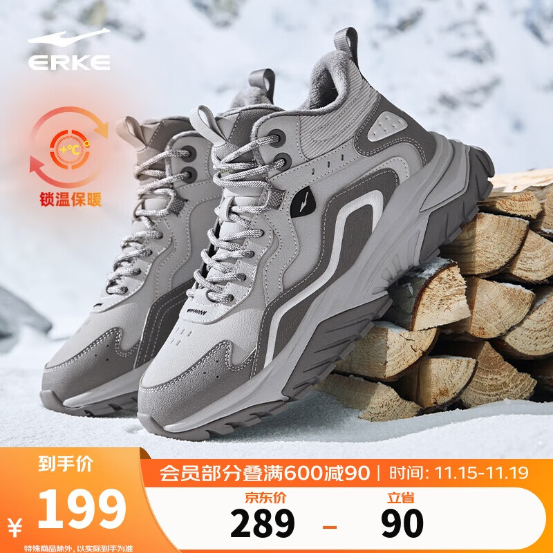 鸿星尔克男鞋高帮棉鞋保暖增高防滑运动鞋子男休闲鞋炽野3