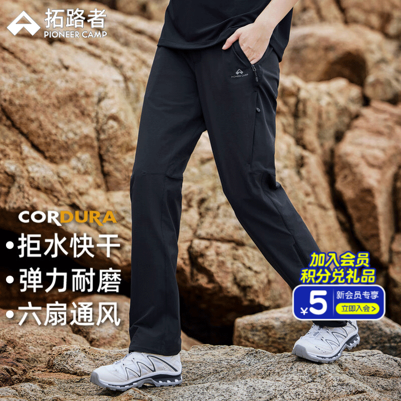 拓路者六扇门考杜拉软壳裤男冬季户外裤子登山防风防水保暖长裤直筒徒步 黑色-考杜拉三季版 L