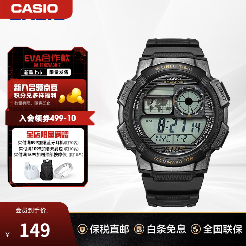 卡西欧(CASIO)男士手表 运动型初高中学生石英数字电子表防水手表 潮流腕表男表 AE-1000W-1AVDF