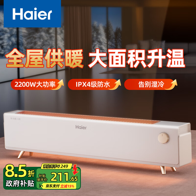 海尔(Haier)取暖器踢脚线家用卧室大面积电暖器石墨烯电暖气节能省电电热器干衣婴儿浴室防水移动地暖全屋升温 【航空铝旋钮款】浴室安全防水溅