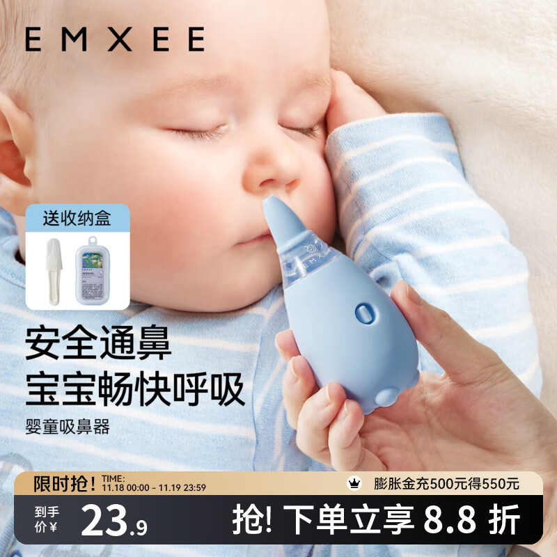 嫚熙(EMXEE)婴童吸鼻器宝宝鼻屎清洁婴幼儿专用鼻子鼻涕清理神器 婴儿吸鼻器-西奥蓝