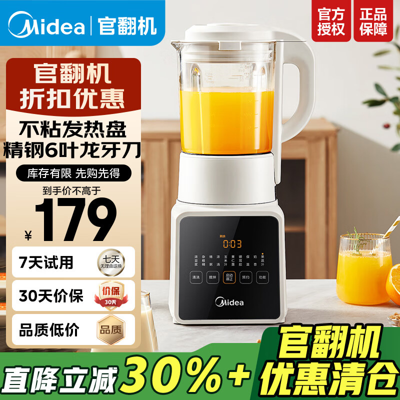 美的【官翻机】破壁机家用豆浆机榨汁机 1.75升大容量多功能免洗轻音辅食料理 【智能预约】PB80P2-C1