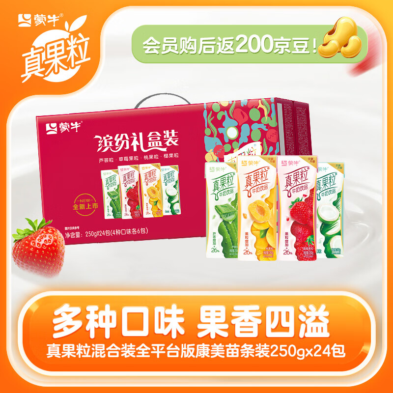 真果粒牛奶饮品(草莓+芦荟+椰果+桃果粒)250g*24盒 部分八月产 【欢聚拍档】缤纷礼盒装24盒