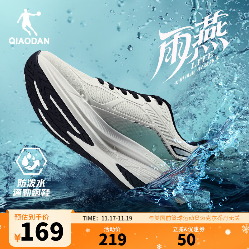 乔丹男鞋雨燕lite皮面运动鞋青少年革面防水跑步鞋冬季减震轻便跑鞋 象牙白/影青色 -革面 42
