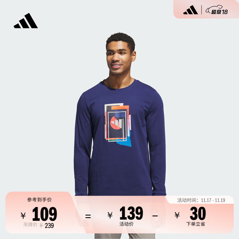 adidas高尔夫运动纯棉圆领长袖T恤男装秋季新款阿迪达斯官方 深蓝色 S