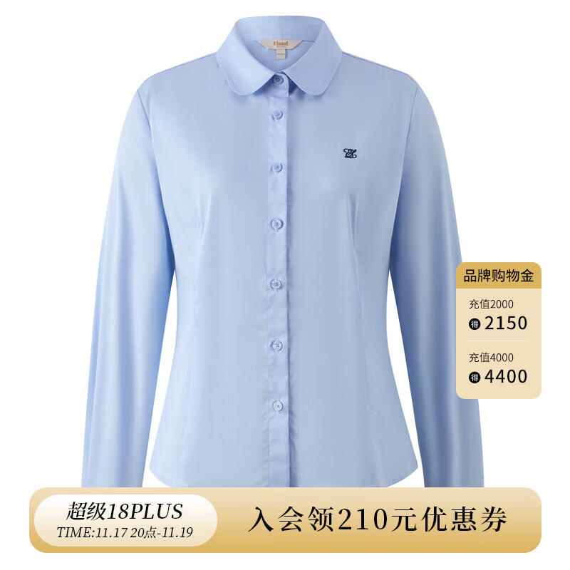 ELAND衣恋衬衫女棉质撞色翻领单排扣长袖上衣2025秋季新款 浅蓝色(51)L/Blue M /165
