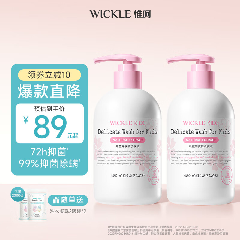 WICKLE内衣洗衣液温和女士内裤清洗液除菌抑菌衣物清洁2瓶组合装 【两瓶】儿童内衣洗衣液