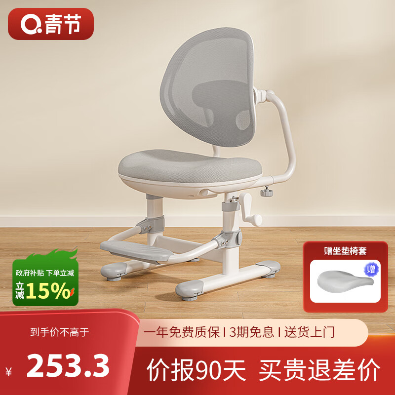 青节 儿童学习写字书桌座椅学生写字可升降调节靠背椅带脚踏育英椅2.0 育英椅-标准款-浅云灰