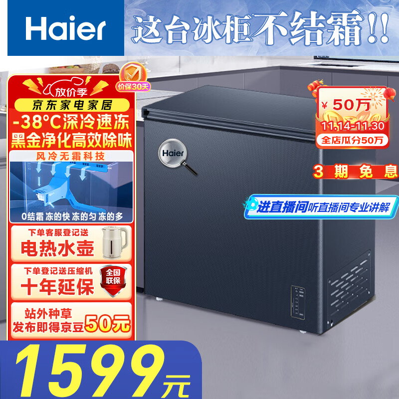 海尔(Haier)159/200/201/241/242升风冷无霜家用商用冰柜 冷藏冷冻柜小冰柜家用商用母乳小型冰箱冷柜以旧换新 -38℃|黑金净化 159WGHED 159L